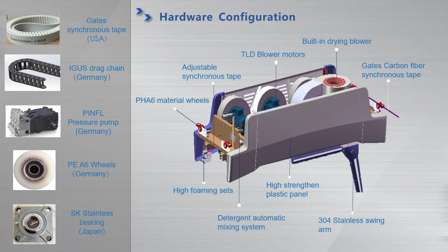 2. Smart 360 rotate arm, spray various washing chemicals with high-precision proportioning technology.